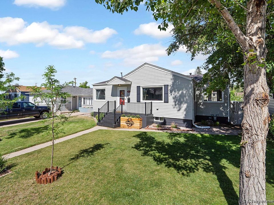 Imagine a charming home with 4 bedrooms and 2 bathrooms, featuring a spacious 1-car oversize detached garage with alley access. The interior boasts hardwood floors, tile floors in the bathrooms, and solid surfaces in the kitchen. Enjoy meals in the separate dining room and relax in the beautifully landscaped backyard, complete with stamped concrete and a lovely pergola. This home also offers the comfort of AC and the peace of mind provided by an active radon system.