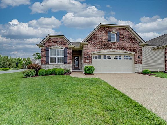 Here's your long-awaited opportunity to right size your living space! Step into this exquisite FREESTANDING 2bed/2bath villa, complete with a separate office/flex space, encompassing all the desired features discerning buyers seek. Upon arrival, the aggregate driveway accompanied with the full brick and STONE front elevation immediately captivate. If you cherish natural light, rejoice in the ample glow streaming through the large garage windows. Indulge in hard surface floors, granite countertops, stainless steel appliances, exquisite 42" cabinetry, lofty vaulted ceiling, mail floor laundry along with the cozy gas fireplace. Say goodbye to your lawn equipment—it's time to reclaim your life. Explore all that the Woodlands sports park has to offer, from paved trails winding through nature preserves to nearby sports fields and playgrounds. Nestled in one of St. Peters' most coveted locations, enjoy convenient access to shopping, dining, healthcare, and major highways 364, 70, and 40. Location: Corner Location