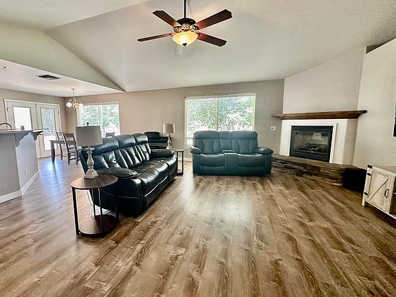 Unwind in style in this captivating 3-bedroom, 2-bathroom home nestled in the sought-after Stone Mountain Village subdivision. The open-concept design with vaulted ceilings fosters a light and airy feel, perfect for modern living. Entertain effortlessly in the expansive backyard, graced by mature landscaping on a sprawling corner lot of .35 acres. A convenient storage shed provides additional storage, while the desirable location within Stone Mountain Village adds to the home's incredible value. This is an opportunity not to be missed! Schedule your showing today!