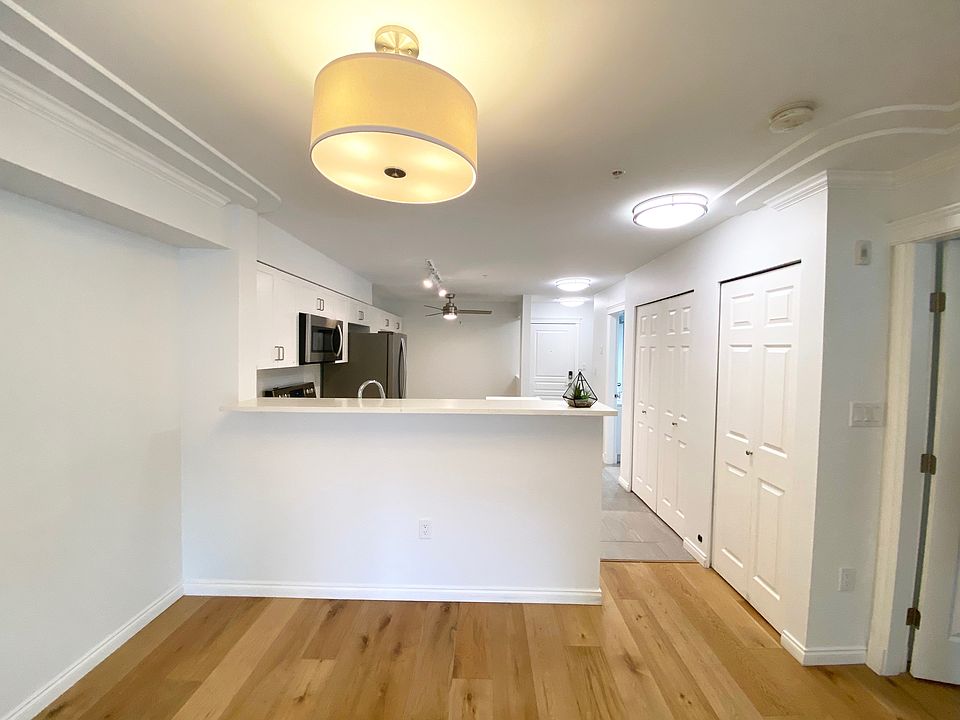 This sophisticated condo is located in the heart of White Rock's historic Five Corners. Just a short walk to the beach and white rock pier, this property is West coast living at its finest. Fully renovated in 2018, this modern ground floor unit has a spacious patio that backs onto a large courtyard. Two bedroom, 2 bath, quartz counter tops, luxury hardwood flooring with radiant heat and a gas fireplace. Features included: In suite laundry, storage locker, one parking space (with bike rack attached) and upon request one possible motorcycle space in underground secure garage. Condo has radiant heat. Appliances; fridge, stove, microwave all by Samsung. Also included, a Bosch dishwasher and a garburator. Utilities that are included are; garbage pickup, gardening, gas, heat, hot water and snow removal. It is currently unfurnished but there is an option for it to be furnished/semi furnished at different price. One pet is allowed upon approval from strata management. This unit and building are non-smoking/no vaping. Public transit available right outside, and just minutes away from uptown White Rock. Non-smoking/no vaping, one small pet allowed ( either one cat or one dog to be approved by strata), references and employment reference will be required.