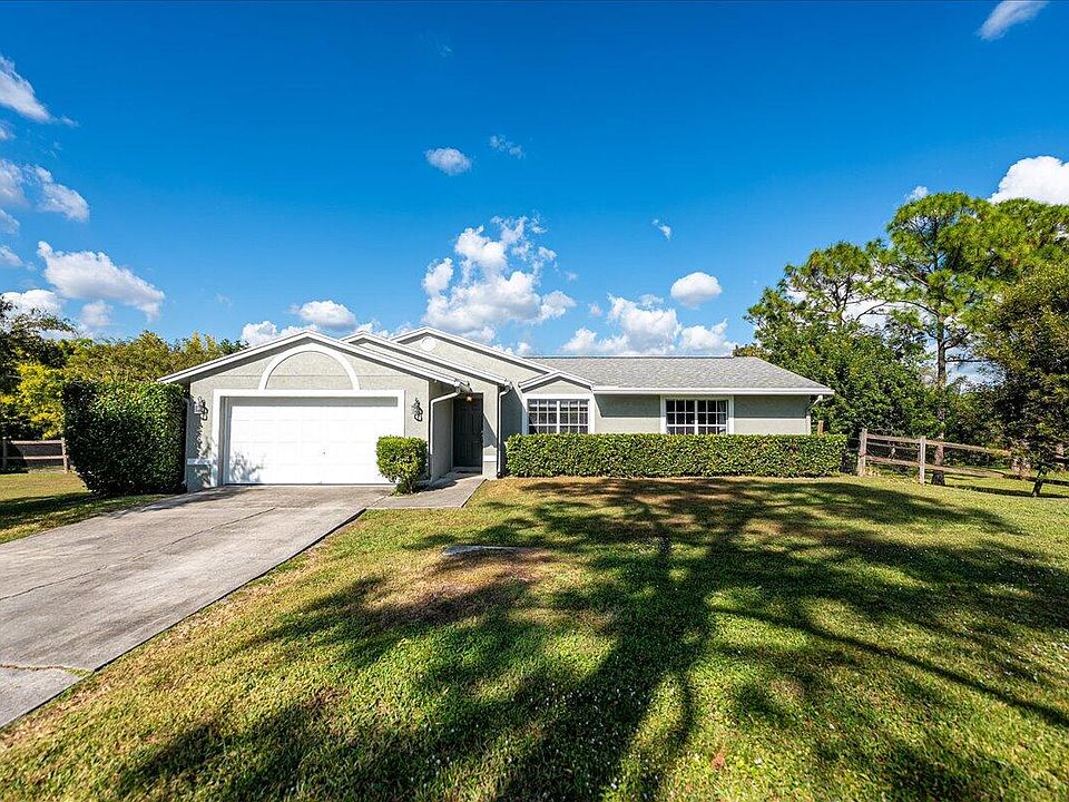 The 3/2 home is nestled in 1.25 acres in The acreage w newly paved roads. This open floor concept has many improvements include Aqua Soft water system 2019.Master bath renovated in 2020. Kitchen renovated in 2020. Granite counter tops with Island and hutch. Newer floors. New hot water heater. Newer roof. walk in closets in every room. Do not miss out on this amazing opportunity for this sale will not last.