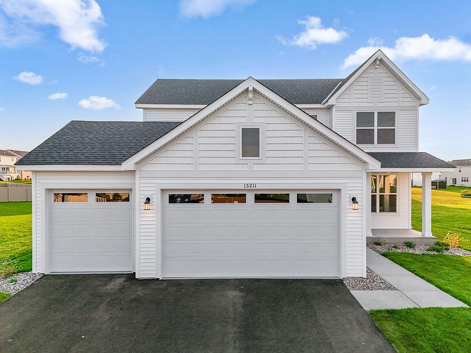 Home is complete and move in ready! Ask about savings up to $5,000 and a 4.99 ARM when using Seller's Preferred Lender! This beautifully designed home offers a perfect blend of elegance and functionality. A grand two-story foyer sets the tone for the warm and inviting layout, leading to the formal dining room—ideal for special gatherings. The open-concept main floor seamlessly connects the Great Room, where a stylish electric fireplace adds comfort, to the bright breakfast room and modern kitchen. Sleek stainless steel appliances, gleaming quartz countertops, and a spacious layout make the kitchen a true centerpiece. Upstairs, three well-appointed secondary bedrooms share a full bath, while a convenient laundry room adds efficiency to daily routines. The luxurious owner's suite provides a private retreat, featuring a walk-in closet and an en-suite bath with both a separate tub and shower. With an unfinished basement offering potential for customization, this home is a perfect blend of sophistication and practicality. Located in Northfork Meadows, scenic nature spots are in walking distance such as Pearson Park, Lake Itasca trail and The Links at Northfork. Close by are U.S. 69, MN-47 and Northstar Commuter Rail station for easy access to Minneapolis. Don't miss the chance to make this home yours!