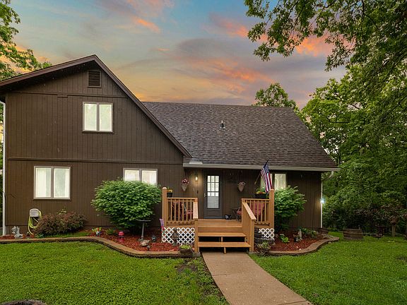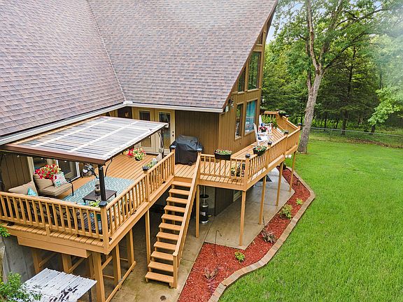 Dreaming of that perfect Lakehouse? Retirement can't come soon enough? Living the Life that you don't have to Vacation From? This home is perfectly appointed for just that! Sits on nearly 8 Acres Surrounded by Truman Lake! Drive into your wooded oasis, park in your private driveway or your four car garage/outbuilding that is heated with its own wood stove and insulated walls. Walk into the rear of the home first that opens into your laundry/mudroom off the upgraded kitchen w/Quartz countertops under custom built wood cabinets, newly painted walls, updated light fixtures throughout the home - even all new faucets in every room! As you turn the corner your mind opens, as the Great Room opens up to the full length of the home's two stories. Those windows give off so much natural light you feel like you are one with nature. The Master suite is the entire second level with a walk in closet that is fit for a King AND Queen! Two Large bedrooms on the main floor with a full bathroom. The SunRoom/Bonus room offers either a nice office or sitting room. There is a second living space and half bath on basement/lower level with a wonderful walk-out to the lush green yard and patio under the beautiful deck above, facing the timbered majesty knowing the Lake is just beyond that! You don't even have to be quiet to see the Whitetail Deer, Turkey, Rabbits, Quail, Doves, Waterfowl and other brilliant creatures of the area... this is their home too! The solar lights on the deck posts light up the forest to find your way home when you are out walking in the evening. There is a fence around the front to enclose your sundeck, covered patio and firepit for ultimate privacy! Come take a ride through the cut trails on the UTV and check it out! (Truman State park Marina 7 Miles/Long Shoals Marina 6 Miles/ Blanca Road Boat Ramp 1 mile.)