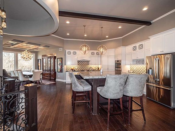 You will love coming home to this stunning custom built ranch situated on a beautifully landscaped lot complete with a four car garage, great floor plan for entertaining, hardwood floors, lovely living room with built-in bookcases with lighting, gas fireplace, recessed lighting, ceiling fan, large windows, and built-in speakers, gorgeous granite kitchen with raised island breakfast bar, an additional island, crown molding, tile backsplash, recessed lighting, built-in plate rack, cabinets with pull-out shelving, cushion close drawers and cabinets, Bosch appliances, under cabinet lighting, and walk-in pantry with floor to ceiling lazy susan, granite counter tops, and built-in spice rack. Right off the kitchen is a great office space to make bill paying a breeze with a built-in desk and drop zones. Laundry will be a breeze with a main floor and basement laundry hook-ups. The main floor laundry room features tile flooring, hanging rod, cabinets, built-in shelving, granite counter tops, sink, and access to the master closet. Spend peaceful nights in this spacious master suite complete with hardwood floors, trayed ceiling with ceiling fan, built-in speakers, plantation shutters and door to the deck, and private bathroom with tile flooring, private commode, soaker tub, tile shower, Quartz counter tops, double sinks, built-in cabinets, and walk-in closet with 3 level hanging rods and island with drawers. Entertain with ease in this fabulous finished basement complete with family room with built-in entertainment center, gas fireplace with stone surround, recessed lighting, and large sliding glass door to the patio. This lower level also features an oversized wet bar area with Bosch dishwasher, tile flooring, and beautiful wine room. The game room is the perfect place to unwind and features carpeting, neutral décor, large viewout windows, and recessed lighting. Relax after a long day in this spectacular backyard complete with covered deck with ceiling fan, covered patio area with outdoor kitchen, inground heated salt water pool, fire pit, wrought-iron fencing, and backs to the trees and walking path! Make sure you do not miss this breathtaking beautiful home!