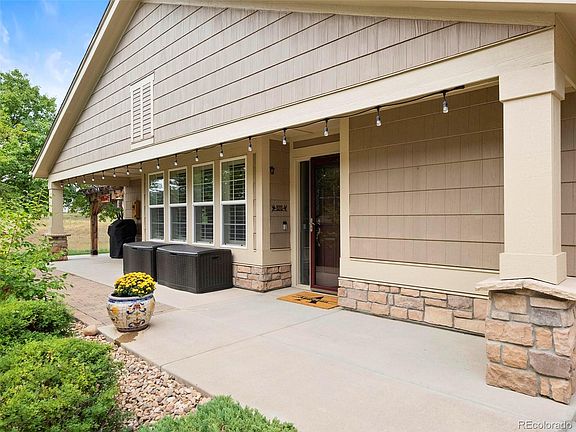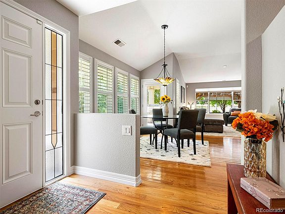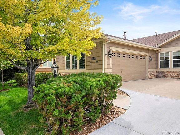 Move in tomorrow to this beautifully maintained end unit townhouse in the Heritage Todd Creek. Featuring gorgeous views overlooking the 3rd hole on the Todd Creek Golf Course. This lovely home with 2 beds/2 bath/oversized 2 car garage affords all the space you need, all on one level! You'll be impressed as soon as you enter this bright, sun-filled residence that boasts wide windows, hardwood floors, cathedral ceilings, and newly painted interior. Relax in front of the gas fireplace in the living room or cook up a fine meal in the stainless kitchen, complete with cherrywood cabinets, granite counters, tile backsplash and breakfast bar. Spacious primary bedroom suite with walk-in closet and ensuite bath featuring dual vanities and recently remodeled with new ceramic tile flooring also in the deluxe shower. Second bedroom/office has custom Murphy bed with built-in cabinets for storage and a charming window seat. Witness sunsets and enjoy the shade of the mature trees as you soak in Colorado’s 300 days of sunshine from under the cedar pergola on the stone tile backyard patio, which is surrounded by a professionally landscaped outdoor area that requires no maintenance by the owner. Take advantage of Heritage Todd Creek’s resort-style living, with a clubhouse that offers many amenities, such as a restaurant and club activities, as well as recreation including indoor/outdoor pools, tennis and pickleball, fitness center, and gathering places to socialize with friends and neighbors. Close to restaurants and shopping, E-470 and I-25, this home and community have it all!