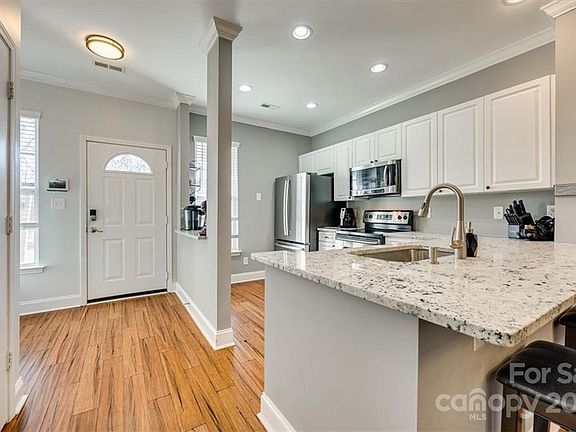 Adorable updated townhouse! Beautiful kitchen with island. Granite countertops, expanded countertop space and stainless steel appliances. Best views in the neighborhood with a pond right off your back porch. Engineered hardwood floors throughout. 2023 HVAC. This home is move in ready and talk about the location!! Near shopping, stores and I-485.