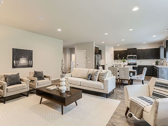 Former model home for the builder, you'll find this house is extra special. Welcome to a beautiful, move in ready home featuring a flexible 5-bedroom floor plan — perfect for home office, hosting guests, or providing everyone with their own private space. Large kitchen with plenty of storage, quartz countertop and s/s appliances. Upstairs the primary bedroom serves as a serene escape, a peaceful spot to relax and unwind with an adjoining lux bathroom. The spacious backyard is ideal for entertaining or creating your dream outdoor oasis, with plenty of room for a garden, play area or entertaining. [Home Energy Score = 5. HES Report at https://rpt.greenbuildingregistry.com/hes/OR10185206]
