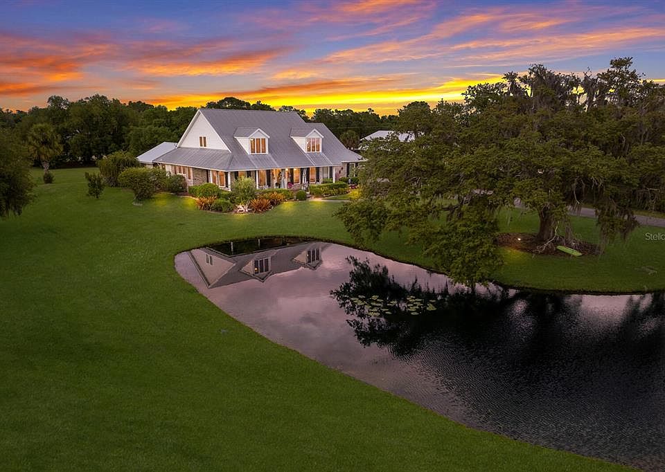Welcome to Waterline Farm. A spectacular ode to East Manatee County history nestled on A ZONED 5 ACRES of lush land. This exquisite property offers a serene escape JUST 1.5 MILES FROM SHOPPING & DINING . As you make your way down the long-paved driveway, past the pond, and through the archway of hundred-year-old Oaks, you're greeted by the charm and unmatched character of the countryside. Stepping inside, you're welcomed by a warm and inviting interior, a grand staircase, and PLANTATION SHUTTERED WINDOWS frame picturesque views of the surrounding floral landscape. The heart of the home is the spacious living area, complete with a cozy GAS FIREPLACE and DUCHATEAU WOOD FLOORING. The kitchen is a chef's dream, featuring high-end MIELE and SUBZERO APPLIANCES, 8.5" CENTIMETER LEATHERED GRANITE countertops, and ample CUSTOM CRAFTED CABINETRY for all of your culinary endeavors. Venture outside and discover the true enchantment of this property. A serene POND reflects the colors of the sky, inviting you to sit and contemplate the beauty of nature on the tree swing that sways near the shore. The expansive grounds are perfect for leisurely strolls, picnics, or family games on the front manicured lawn, while ATVs, dirt bikes, and other toys can truly experience the untouched nature of Florida living in the back portion of the property. Two breathtaking Grandfather Oaks offer an unimaginable sacred place to reflect or gather beneath their canopies and additionally offer privacy to the main home and SALT WATER POOL. The remaining grounds boast several outbuildings such as a 3-STALL BARN with tack room and additional storage, and an awe inspiring 4000 SQUARE FOOT WAREHOUSE that features soaring ceilings and beautiful exposed timber relocated from the locally renowned, Florida original, Walt’s Fish Market & Restaurant. The warehouse is equipped with 3 LOFTS, A CAR LIFT and plenty of space for up to 15 cars, Harley's, an artist's studio, or dream workshop, allowing you to further indulge in your hobbies and passions. Seller states current zoning allows for ADDITIONAL 1000 SQFT GUEST HOUSE to be built (plans permitting and county approval required). Whether you're seeking a peaceful retreat to recharge your spirit or a place to create lasting memories with loved ones, this remarkable property offers the perfect blend of charm, tranquility, and convenience. ABUTTING 6 ACRES currently for sale under separate listing and for an additional cost that when combined would essentially create an incredible 11 acre parcel.