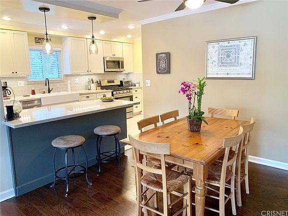 Stunning one level condo located in Sherman Oaks. This gated complex has 8 units, perfect for those who prefer a more private setting. Walk into an open floor plan with engineered hardwood floors in the living room & dining room, smooth ceilings, recessed lighting, gas fireplace, small patio and plenty of natural light. A great cooks Kitchen with farmhouse sink, large island with built in shelving, seating for two, perfect for entertaining. Living room leads to a private outdoor patio with seating for two and BBQ. Large master suite features his and hers closet spaces and a master bath with walk-in tiled shower and bench seat. Unit also includes, Central AC/Heat, Washer/Dryer Hook Up's in Unit, 2 car tandem subterranean parking garage, community BBQ/Patio area, LOW HOA, close distance to parks, schools (Kester Elementary and Millikan Middle School), shopping centers (Sherman Oaks Galleria)and great dining on Ventura Blvd. This is a great opportunity for any buyer looking in Sherman Oaks.