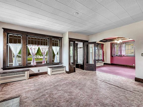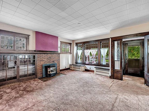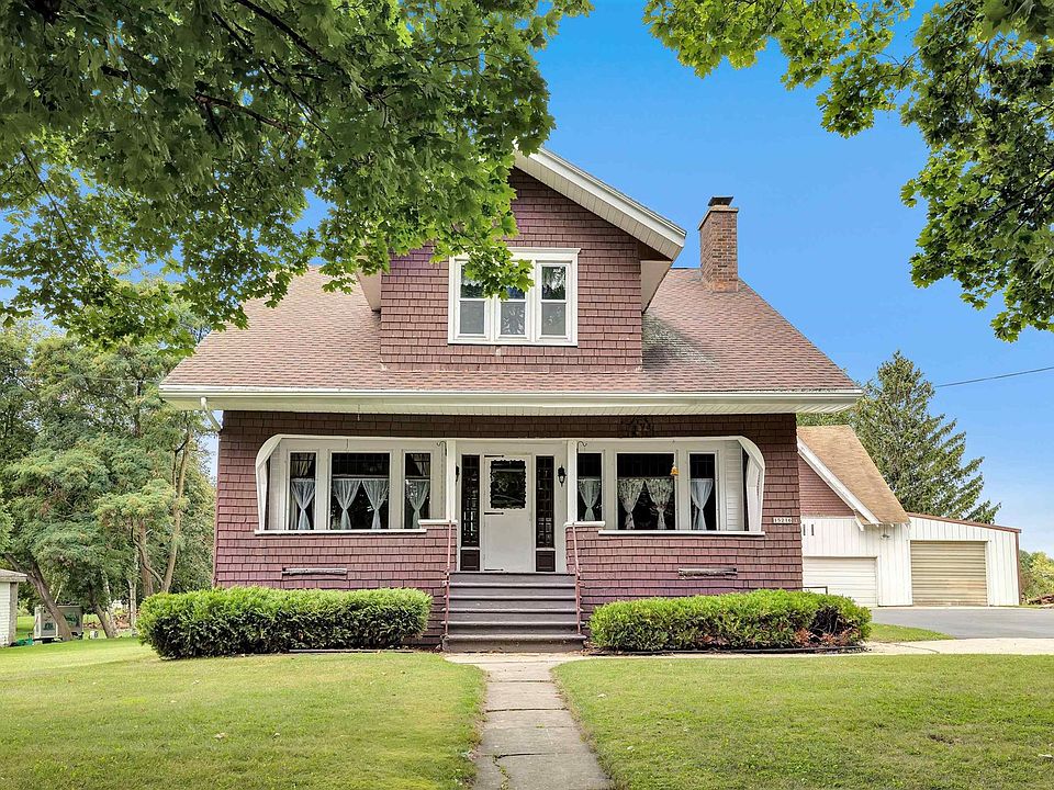 Large home w/ tons of original woodwork, character and closets galore! A beautiful home and property in a small, quiet community - this four bed, one and a half bath home includes all original hardwood floors (under carpet), 9 ft ceilings and architectural woodwork details. Main floor living includes pellet stove, bedroom/office, laundry/nook and a half bath. Three bedrooms on the second floor each with large walk-in closet, one hall closet and full bath. Partially finished walk-out basement with bar, toilet hook-up, and full size windows. Covered front porch, walk-out deck in the back. HUGE detached garage - two+ stall tandem with additional storage/closet spaces, access to large loft/attic above, & a one stall tandem heated shop with extra large overhead door. Home is being sold AS IS.