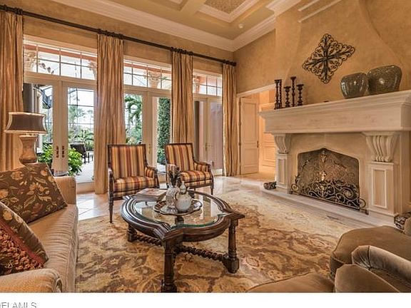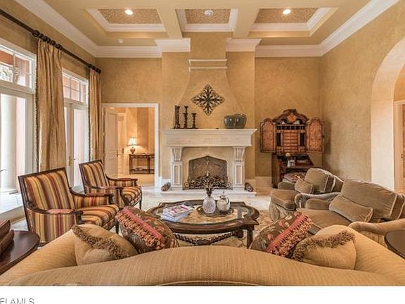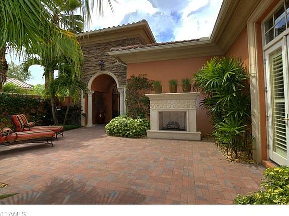 This is an exquisitely designed and furnished home in the highly desirable Medici neighborhood of Mediterra. This fully custom home is being offered by the original owner who has taken great care to ensure every detail has been executed flawlessly and carried throughout; beautiful hand painted ceilings, custom wall finishes, gorgeous stone flooring, high-end custom furnishings, finishing touches, IMPACT GLASS and more. From the gated courtyard entrance, with open air seating next to a cozy fireplace, you are welcomed in to this truly exceptional property. The incredible living room warmly welcomes guests and sets the tone for all that follows; a spacious great room and kitchen area for the largest of family gatherings; terrific pool, spa, outdoor living space and loggia that are perfect for entertaining; a private rear exposure with beautiful golf course view. And, the Master bedroom, closets and bath are as to be expected in a home of this caliber; spacious, inviting, finished and furnished to the highest standards. This is a true gem.