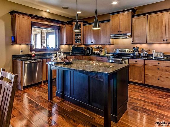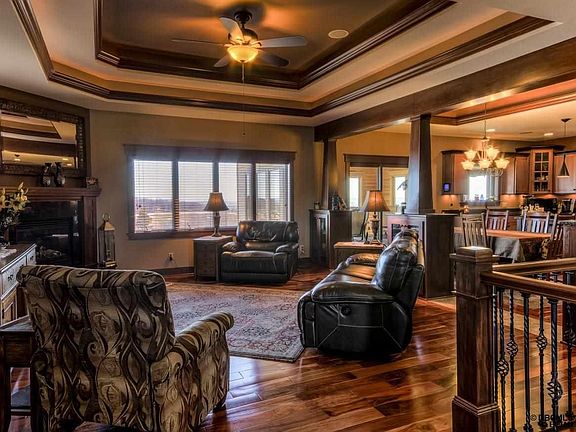 You can enjoy the incredible panoramic view from the comfort of the 3 seasons enclosed porch and maintenance free deck! Many high quality upgrades went into this walkout ranch style home sitting on a one acre lot featuring 5 bedrooms, 3 and a half baths and 4 garages with 220 volt electric service in the garage. The great room has a gas fireplace, cherry hard wood floors, tray ceilings, and custom hand made columns and cabinets. The beautiful kitchen features maple cabinets, granite counters, stainless appliances, walk-in pantry, and the main floor laundry is right off the kitchen area. You will love the huge shower w/glass enclosure and walk in closet that comes with the master bedroom suite. You will also find that the finished basement boasts the same high quality finishes, custom trim, solid doors and tray ceilings as the main floor level. Also included are six flat screen TVs, home theater system and home theater seating, whole house sound system, and salt-less water filtration system. Near Sundown Mountain Ski Resort, The Meadows Golf Club, and short drive to Thunder Hills Country Club. Views of the countryside, and might even get to see some fireworks from your own back yard!!