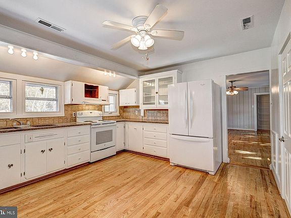 Spacious Rancher sited on 1.77 sprawling acres in sought after Woodbine boasts over 2,000 sq ft of living space with bright and airy rooms, and fresh interior paint! This home includes a large 110 ft. garage, originally the Apple Blossom Motel, offering abundant storage space and work areas. Beautiful hardwood floors throughout most rooms. Two built-in china cabinets and accent molding are highlighted in the oversized dining room. The kitchen features gorgeous granite countertops, display cabinets, and stone tile backsplash. Hardwoods continue in the living room that includes patio access, and leads to the sleeping quarters offering 2 sizable bedrooms, and the owner's suite complete with a walk-in closet, separate outdoor access, and a full bath with a dual vanity. There's a second full bath, and a convenient mud room for access to the driveway and backyard, and a wood burning stove in a rustic, stacked stone surround. Enjoy outdoor living on the brick patio and covered porch overlooking serene countryside views. A circular driveway and 3 car detached garage provide added convenience; perfect for a home-based contractor or landscaper, and you can customize the lower level to fit your exact needs. Nearby Carrs Mill Park or Poplar Springs Park for additional outdoor entertainment. Easy commuter access to I-70, MD-97 and MD-94. Shopping and dining can be found a short drive away in Mt Airy. You won't want to miss this fantastic home!