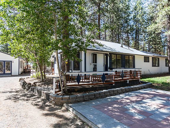 Nice home with open floor plan located in sought-after Ponderosa Pines on 1.37 wooded acres. Certified wood stove in living room, laminate floors, walk in closet with additional closet in Master Bedroom. Master bath has a soaking tub and shower. Detached family/game room with pool table (included in sale). Attached carport and workshop. 10 x 20 shed for storage or additional workshop. Fenced yard, great for pets. Front and rear patios and decks. Room to build a shop or additional garage. Close to mountains, lakes and rivers with the convenience of all that La Pine has to offer. Community water is $345 per year.