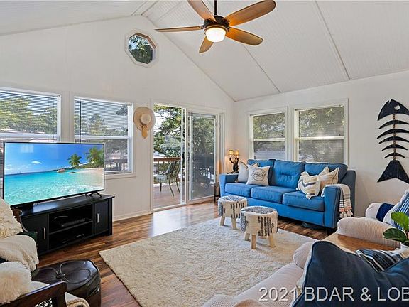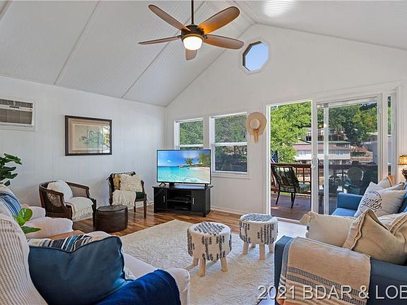 Nestled in a quiet cove at the 8 MM of the Gravois, with the deck overlooking the water and offering plenty of privacy, this is a perfect lake retreat. Turn key package including furnished lakefront home, dock, & boat! In this charming home you will appreciate the vaulted ceiling in the living room with great views of the water and easy access to the deck. With two bedrooms, 1.5 baths, a clean, light and airy open floor plan this is a rare find in todays market. Take in the view off the deck or dock, a gentle sidewalk leads you to the grassy waterfront that is bathed in sunlight all day for waterside relaxation. This property is the complete package including a Pontoon boat. The only thing missing here is you!