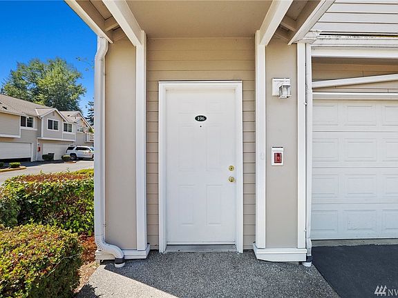 The home is a top floor corner unit with soaring vaulted ceilings and lots of natural light. Located in a private gated community with a 2 car garage & entry on main floor. Garages make up the lower level so there are no neighbors above or below this unit for maximum privacy. Home features a cozy living room with gas fireplace and sliding glass door to private balcony. Spacious kitchen with all appliances, lots of cupboards & pantry. Dining area off kitchen. Down the hall is Guest bedroom & 3/4 bath, utility closet with washer & dryer & Master bed with full bath & dual sinks. Located in Award-winning Northshore school district, and just minutes from shopping, dining & entertainment and easy access to I-405.