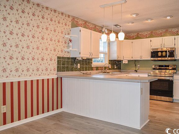 LOCATION, LOCATION, LOCATION! 3 bedroom 2.5 bathroom traditional beach cottage located in the Cherry Grove section of North Myrtle Beach. Just a short drive down to the ocean, this stunning home sits on an oversized double lot and features upgrades throughout! House comes partially furnished with a full list to convey provided by owners and lots of the major items have been replaced/installed - no major expenses for the new owner to walk into. These items/expenses include but are not limited to: NEW SAMSUNG SMART RANGE/MICROWAVE & WATER HEATER in 2022. NEW FLOORING in kitchen, dining room, & living room in 2021. Remodeled master bathroom in 2021 with westshore homes. NEW LG WASHING MACHINE, NEW LEAF FILTERS FOR GUTTERS, & RAINBIRD IRRIGATION SYSTEM in 2020. NEW GUTTERS in 2019. NEW ROOF, TREE REMOVAL, LANDSCAPING, FENCE, & WHIRLPOOL FRIDGE in 2018. NEW WINDOW AC UNITS UPSTAIRS in 2019 & 2015. The exterior of the home offers a carport with storage shed, spacious front yard with manicured mature landscaping, huge fully fenced in backyard, front covered porch with custom draw shade, and large wood deck with automatic remote controlled covered awning. Not 1, not 2, but 3 detached storage sheds can be found in the backyard for additional storage needs and 2 gates leading to the side/front yard of home for ease of access (with additional gated storage shed on side). You will be hard pressed to find another lot this size in this historic high demand area. Walking through the front door, you enter into a foyer area with the coat closet and half bathroom in the hallway and staircase leading to the second floor (with electric acorn stair/chair lift) - which features two spacious bedrooms with overhead ceiling fans and lots of closet space separated by a full bathroom with single sink bowl vanity and tub/shower combo. Additional flex/bonus room can be found through the closet of the one bedroom and this large space offers lots of functionality as a play room, office space, sewing/craft area, etc. Additional linen closet in hallway upstairs continues the abundance of storage space throughout this house. Downstairs features the master bedroom suite which is oversized and offers an overhead ceiling fan, walk-in closet, laundry/utility closet with full size washer/dryer & overhead storage, as well as the bathroom en-suite with a double sink bowl vanity and walk-in shower with glass door. Large open living room features an overhead ceiling fan, wood burning fireplace, and custom lighting above the built-in shelving. Through the living room doorway you enter into the kitchen/dining room area which features upgraded white cabinets, plenty of counter space, breakfast bar with pendant lights, pantry, and a full set of high end stainless steel appliances. Just off the dining room area is the sliding door which leads into the enclosed porch/carolina room - another great flex space that could be used as a sun room, office space, etc - with door access to the back porch/wood deck. This home is packed full of so many more features and upgrades that need to be seen to be appreciated - schedule your private showing and come check out this beach cottage in Cherry Grove before it sells quick!