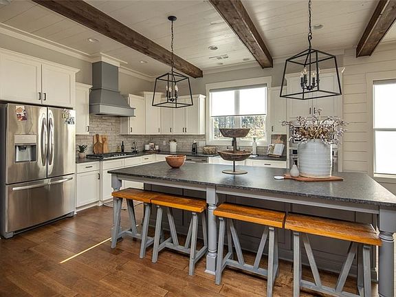 Absolutely gorgeous and better than new Farmhouse on almost 6 private acres. 5 bedrooms, 4.5 baths with beamed ceilings, stone fireplace, built-in cabinets, oversized kitchen island, master on main with separate vanities, soaking tub and tiled shower, open floor plan and curated lighting throughout. Three car detached garage offers ample storage above. Blown insulation, appliances, HVAC, all lightings, and thermostat are energy efficient. Call to schedule your showing today!
