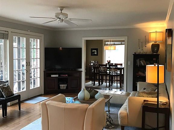 - Living Room: Fireplace, Floors-Hardwood, French Doors, Books, Recessed Lights