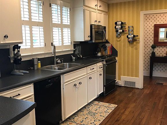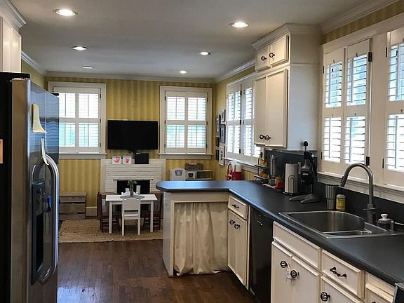 - Kitchen: Counter Tops-Formica, Eat In, Floors-Hardwood, Cabinets-Painted, Recessed Lights