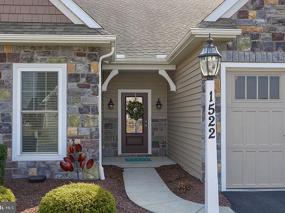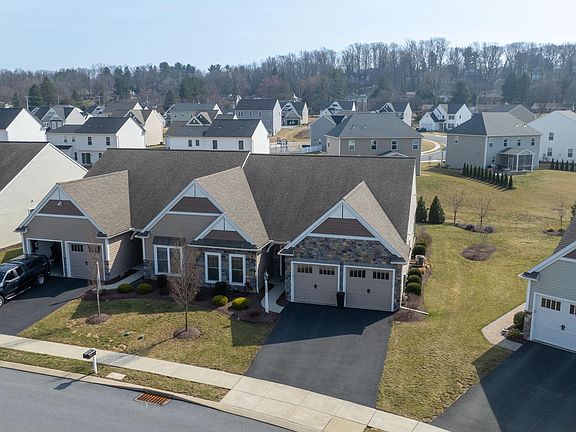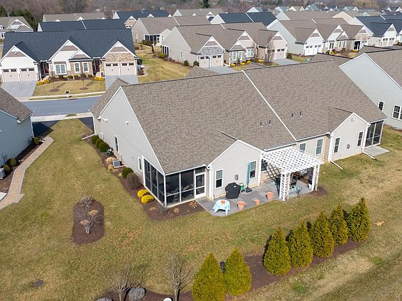 Welcome to this beautifully crafted 2-bedroom, 2-bathroom carriage home built by EGStoltzfus, nestled in the highly sought-after Landis Farm community. Offering the perfect blend of comfort and convenience, this home provides easy access to local highways, shopping, and nearby walking trails—ideal for an active lifestyle. Step inside to discover an inviting open floor plan designed for effortless single-floor living. The combination dining room and kitchen seamlessly flow into the adjacent living room, all adorned with elegant crown molding and stunning hardwood floors. The kitchen is a chef’s dream, featuring a spacious center island with seating, gorgeous granite countertops, stainless steel appliances, gas cooking, and a large pantry. Enjoy direct access to the screened-in back porch—perfect for morning coffee or evening relaxation. The bright and airy living room is a welcoming space, complete with a cozy gas fireplace, making it the perfect spot to unwind. The primary suite offers plush carpet flooring, a generous walk-in closet, and an attached ensuite featuring a large walk-in tile shower and double sink vanity. A well-appointed guest bedroom is conveniently located near a full bathroom, which boasts a tub-shower combination with intricate tile work and a double sink. A private home office provides the flexibility to work from home or create a dedicated hobby space. Step outside to the beautifully landscaped backyard retreat, where a screened-in porch opens to a stone patio with a charming pergola—an ideal setting for outdoor gatherings. Additional highlights include a spacious 2-car garage with attic access, perfect for extra storage. Don’t miss this incredible opportunity! Schedule your private showing today and experience the charm of this exceptional home firsthand.
