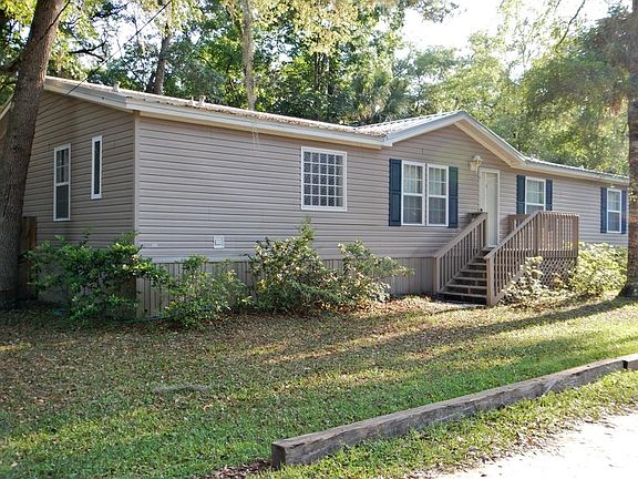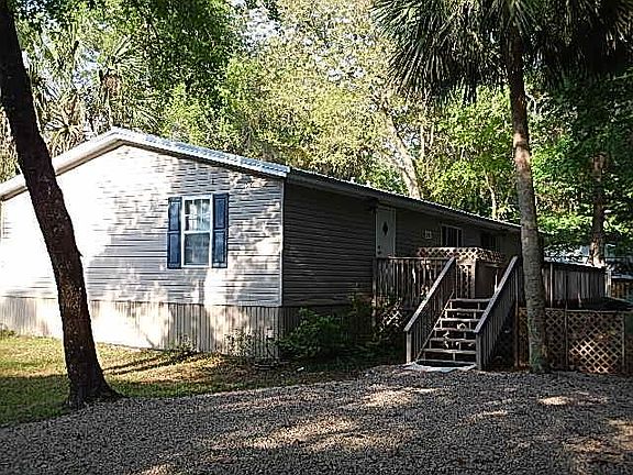 2002 Fleetwood DWMH on corner lot with gravel drive. Large Master & LR, smaller Fam Rm can be office, Island kitchen with breakfast bar. Sliding doors open to gated deck allowing pets access to fenced back yard. Ceiling fans, upgraded light fixtures with dimmers throughout. Home equipped with thermal windows, 2014 HVAC unit & 2014 metal roof which greatly improve cooling efficiency. Deeded 30' easement provides access to the West Branch of the Steinhatchee River. Great for kayakers! Perfect for full time or part living.