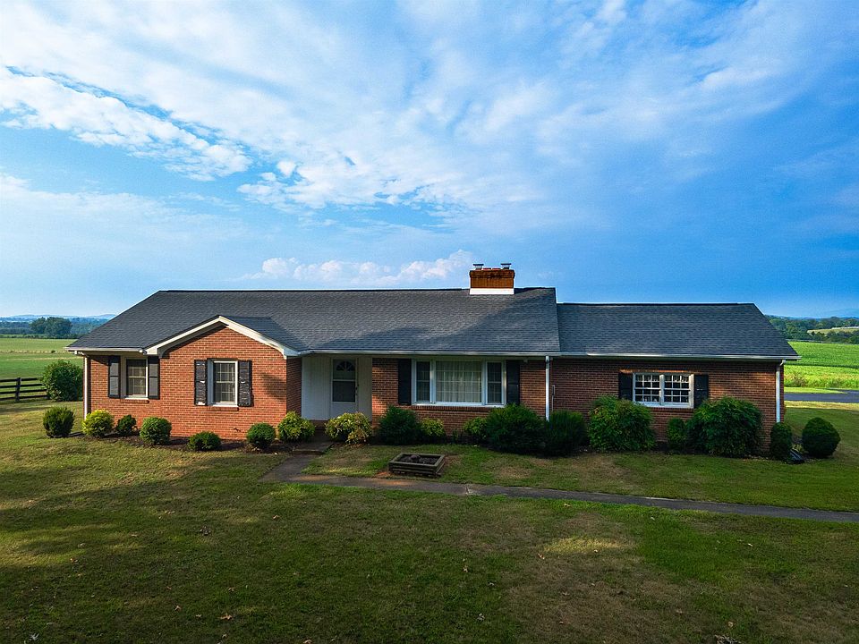 First time offering this one level brick home surrounded by farmland and stunning views in a private setting. Area for livestock, or hayfield. New well installed 6 years ago with new plumbing, water softener, pressure tank & UV light in full unfinished basement. Septic pumped 6-8 years ago. Living room, family room, & all three bedrooms have oak flooring. Sunroom was added (not heated & included in sq. ft) with built in grill. Laundry room off of sunroom & washer/dryer convey. Fireplace in LR was cleaned & capped, and fireplace in family room never used (sold AS-IS). Oil tank for forced air heat is new. Garage has work bench. ROW language will be added todeed transfer to remainder farm of 90 acres +/- that could be available for sale w/brick home or seperate later. Ask listing agent for details. **PLEASE DO NOT DRIVE BY! YOU MUST HAVE APPOINTMENT WITH AGENT!**