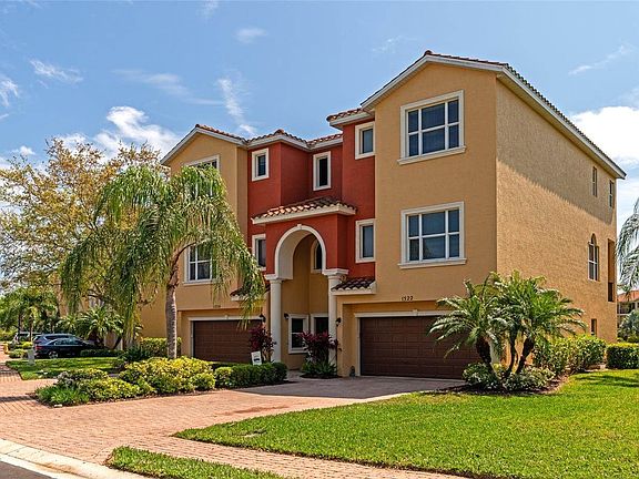 Nestled within the illustrious enclave of The Hammock at Riviera Dunes, this meticulously maintained townhome epitomizes the pinnacle of luxury living in a picturesque boating community. With four bedrooms, four baths, and a private elevator spanning 2848 square feet across three impeccably designed floors, this residence offers unparalleled comfort and convenience, complete with a two-car garage. Upon ascending via the private elevator, the second level unveils the main living areas, seamlessly blending elegance with functionality. Natural light floods the space, accentuating the Tuscan-inspired architectural details, while highlighting the chef's dream kitchen, dining room, and living area. This level also boasts a versatile third bedroom or office, ensuring every corner of the home is utilized efficiently. As you venture upstairs, the elevator grants access to the luxurious primary suite and a second bedroom, both featuring en-suite baths for ultimate comfort and privacy, with a convenient laundry room nestled in between. At the heart of the home lies the chef's dream kitchen, boasting a gas range, granite countertops, 42-inch wood cabinets, and a breakfast bar—an ideal space for culinary enthusiasts and entertaining alike. Open to the dining and living room, this area creates an inviting atmosphere for gatherings. Additionally, a balcony has a natural gas hook up for your grill for never ending entertainment that spans the entire length of the townhouse on the second level, offering breathtaking views of the picturesque courtyard and lake. The ground floor presents a true gem, offering endless possibilities as a man or she cave, office, or comfortable space for in-law living. Sliding doors lead to the expansive patio, perfect for outdoor entertaining amidst lush landscaping and serene lake views. Residents of this resort-like community enjoy exclusive access to a wealth of amenities, including two pools, tennis and pickleball courts, a fitness center, and a full-service marina with a restaurant and bar. Furthermore, the community boasts an 80-acre protected marina, offering opportunities to purchase or rent boat slips. In addition to all the the features this home has there is a new hotel and convention center coming to the area that will offer even more restaurants and activities within a short walking distance. Living in this beautiful townhome offers a maintenance-free experience, with the HOA covering cable, internet, ADT security monitoring, irrigation, flood insurance, landscaping, roof and exterior maintenance, fire sprinkler maintenance, and termite control. Conveniently located just a short drive to the Gulf Beaches, downtown Bradenton/Sarasota, and multiple airports, Riviera Dunes provides an unparalleled blend of coastal charm and luxurious living. 1522 Third Street Circle E beckons you to indulge in the ultimate waterfront lifestyle. Don't miss your chance to make this exquisite residence your own—schedule your private showing today and prepare to embrace a life of unparalleled elegance and comfort.