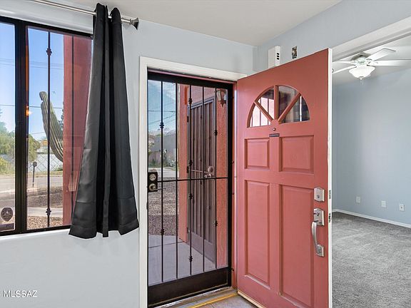 Gorgeous Santa Fe home, centrally located; close to U of A, restaurants, shopping, and jogging/biking on the Loop. 1 block south of the University of AZ farm. Split bedroom plan boasts a separate entrance for the front bedroom (perfect for an office), and rear and primary bedrooms with glass sliders to the large back yard with mature shade trees. Great room also has a glass slider to the back yard. Fireplaces in the great room and primary bedroom for your enjoyment. Transferrable Service Plus Home Warranty. Seller open to 12 month Lease to Purchase.
