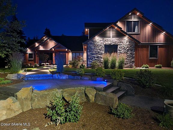 Better than new construction in Bear Creek Estates gated community! Completed in 2020, no details were spared in the fit and finish of this quintessential North Idaho Smart Home. From the Control 4 dashboard, manage your home and security with the tap of your finger. This home is an entertainer's dream. Spend quality time with friends and family under the beautiful, covered back patio replete with a full outdoor kitchen, outdoor speakers, and the melodic sounds of two waterfalls for ambiance. From the front porch, take in world renowned sunsets or a dry lightning storm rolling across the prairie. Pamper yourself in the master bath under the massive rain-head shower, relaxing soaking tub, and radiant heat floors. Need room for your cars and toys? The attached, heated, four-car garage will accommodate you well. Need even more room? The 1500 SF shop is fully finished, heated, includes a full bathroom, and is set up to accommodate an RV. You'll never want to leave this home but Hayden Lake, Avondale Golf Course, Hayden Lake Country Club, National Forest lands and the iconic Porch restaurant are only minutes from your front door.