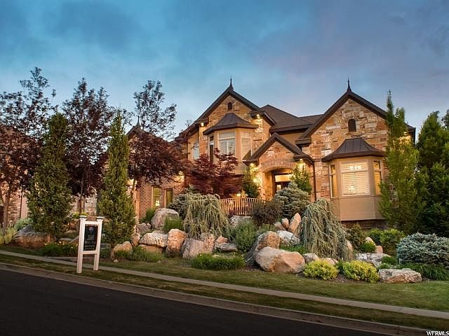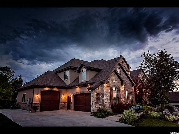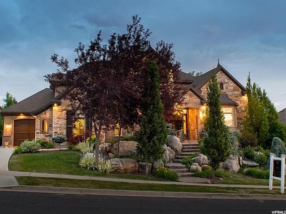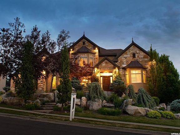 Stunning luxury home with beautiful architecture and exceptional custom finishes! Brand new paint and carpet throughout! This home was formally a Parade of Homes executive winner! Walk up through plush landscaping, over a bridge to admire a $50k water feature!, and then come through an impressive foyer to see huge cathedral arches, and look up to a dramatic wood octogon ceiling - major "wow" factor! Faux wood beams and hardwood floor in formal living room. Travertine flooring throughout the rest of the home, inlaid with wood border.. Gorgeous kitchen with custom cabinetry, huge granite island bar, and high end appliances and opens up to the family room/great room. Dream master suite on the main level has at approx 14' high ceilings, sitting area with fireplace, and an incredible master bathroom with walk-in shower, and his & hers separate walk-in closets! 2nd bedroom on the main level is used as a craft room, and has a built-in desk. Built-in office area upstairs overlooks the family room, so you can enjoy that ceiling and arches from up here too! Large Jack&Jill bathroom upstairs, and 3rd bedroom has a neat play area. Also, a bonus room upstairs too! Daylight walkout basement has a spacious family room/rec room area, 2nd kitchen (no stove, but capable of having one), and theatre room. Bedrooms downstairs also share another Jack&Jill bathroom. Park-like backyard that has lots of mature trees for privacy, and firepit. Lots of stamped concrete (just re-sealed). Garage has epoxy floors, and 3rd stall is extra deep. RV parking on the side too. Located on the east bench IN ONE OF DAVIS COUNTIES PREMIER NEIGHBORHOODS. VOTED COMMUNITY OF THE YEAR! This desirable neighborhood with a great sense of community, & offers a clubhouse, swimming pool, and gym. Walking trails in the neighborhood, and just below the Bonneville Shoreline trail for close access to hiking and biking. Easy, close access to Hwy 89, and near Station Park. This beauty has a lot to offer! Don't miss it!
