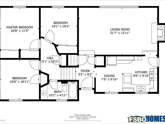 - Total interior livable area: 1,096 sqft