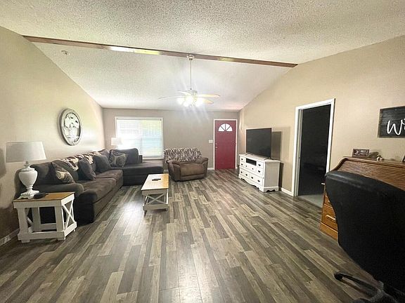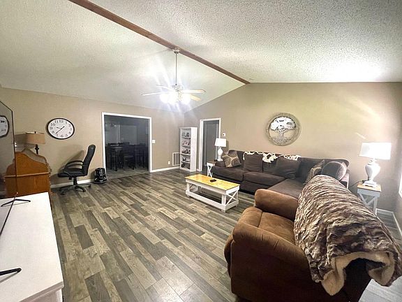 Low maintenance 4 sided brick home w/ vinyl trim features 3 BR/3BA, open kitchen with beautiful cabinets and granite counters, vaulted ceiling in living room with wood beam, split bedroom plan and separate laundry room. Added bonus is the hugh rec room which could easily be a 4th bedroom/master or in-law suite. The spacious bathroom has double vanity, sep shower and jacuzzi tub with granite surround. Outdoor features fabulous landscaping , concrete drive with ample space for turn-around and nice walkways to covered front porch . Spacious deck w/ Brazilian wood is perfect for entertaining.