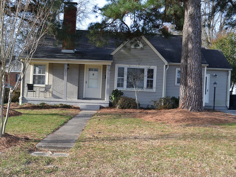 3 bedroom, 2 bath one level with original hardwood floors in a quiet neighborhood. NEW flooring in hall bath; new sink and toilet in master bath. Great starter home. Wood burning fireplace in living room. Private back yard with large entertaining wood deck. Storage building.