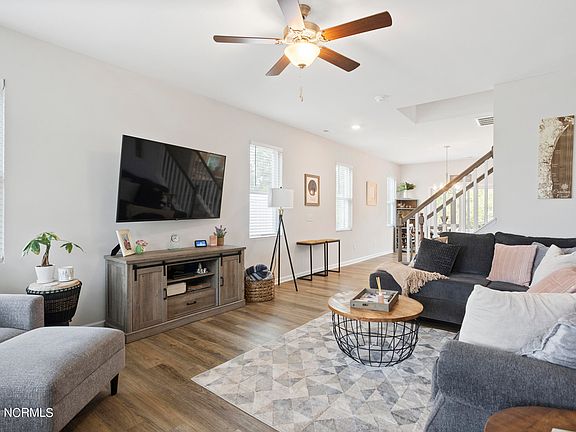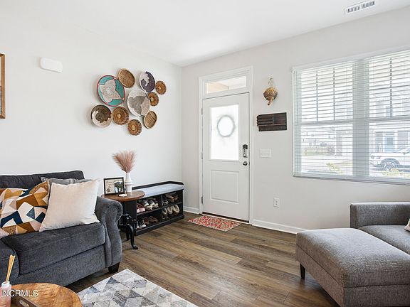 Step into this inviting move-in ready home quietly nestled in the charming New South Bridge Neighborhood. Step inside and embrace the seamless flow of the open-concept layout flooded with natural light, featuring a spacious living area, generous dining space, and a meticulously designed kitchen. Revel in the abundance of cabinet space, complete with a pantry and a substantial center island, all adorned with timeless white cabinetry, exquisite quartz countertops, stylish tile backsplash, and stainless-steel appliances, including a refrigerator. A convenient powder room and coat closet greet you at the garage entrance, rounding off the ground floor with practicality and style. Ascend to the tranquil upper level, where the owner's suite and two additional bedrooms provide a sanctuary of comfort. The owner's suite indulges with a suited bathroom featuring a dual-sink vanity, a walk-in shower enclosed in glass, a private water closet, and a large walk-in closet. Effortlessly manage household chores with the laundry room conveniently located on the second floor. Step outside onto your spacious covered patio with extended grilling area overlooking the private fenced yard, perfect for relaxing or entertaining. Revel in the convenience of a fully sodded and irrigated yard, as well as the added feature of a home water filtration system. Beyond the confines of your home, the New South Bridge community offers amenities tailored to enrich your lifestyle. Featuring boat storage within the community, residents are a mere 15 minutes to the intracoastal waterway and nearby beaches, perfect for leisurely afternoons on or by the water. Golf enthusiasts will delight in the community's 9-hole course, while the community pool provides a refreshing option for relaxation. Venture just 15 miles to Downtown Southport, where an array of restaurants and waterfront boutiques await, adding further allure to this idyllic locale and home.