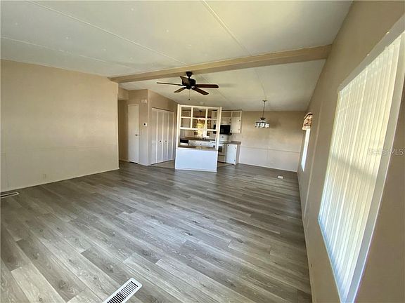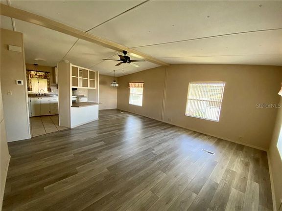 Affordable and Adorable, this 2 Bedroom, 2 bath home is on owned land and is move-in ready. You'll love the stylish waterproof laminate in the Living Room and Hall, tile floors in Kitchen and quality carpet in great condition in the BR's. Enjoy the Florida weather on the private, huge Florida Room with vinyl sliders on the back of the home. A perfect place to visit or just enjoy the quiet. AC unit is only 2 years old and roof is a membrane roof, with metal over the additional structures. Extra large shed with 2 exterior doors with AC window unit: perfect for working on your creative projects or just extra storage. You will be impressed with all the closets and storage. Foxwood Lake Estates is an active community with so many fun activities available, great walking, convenient shopping, restaurants and medical; located between Tampa and Orlando, so you'll never be bored!