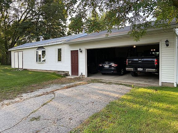 Updated ALL Brick home on a large DBL lot with firepit in a quiet town. Heated 2 stall garage w/ attached 20x38 side garage with workshop and room to park lawnmowers and toys. 3 Bed, 1 Bath, formal dining room or sitting area, kitchen island, large spacious living room. Beautiful hardwood floors. Clean basement with room for lots of storage. Remodeled in 2015.