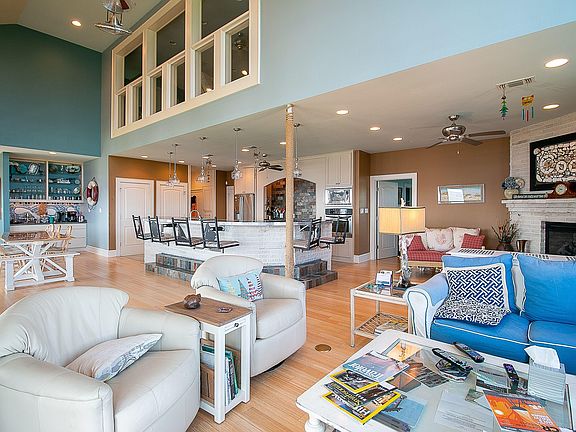 Amazing views from this beautiful, custom home on North Beach! 3 huge bedrooms a/ add'l bunk room (4 bunks), Library, large open area that has Greatroom, Dining Room, Wetbar and Kitchen with huge wrap-around island that offers tons of extra seating... perfect for entertaining! French doors across the front with transoms and lots of windows brings in tons of natural light! Handicap accessible, elevator, high ceilings, gas fireplace, 5 car carport, beautiful from balcony, deeded pier rights... too many amenities to list!