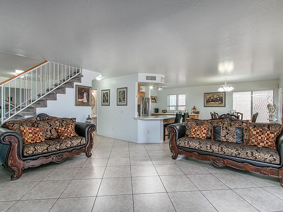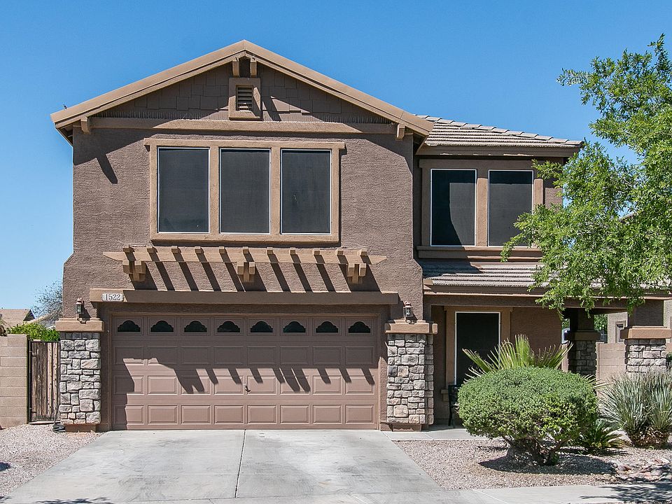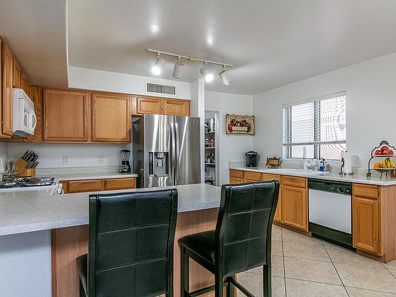 Beautifully maintained 3 beds + den w/ double doors, 3 baths home with plenty of living space in this 2,235 sq ft great room floor plan that includes a HUGE loft! The great room is bright and naturally lit with sliding door access to the backyard. Neutral paint & tile flooring throughout lower level including the eat-in kitchen that features abundant 36'' oak cabinetry, white appliances including an electric range/oven, walk-in pantry, and breakfast bar seating. The upstairs loft is open and airy with carpet, vaulted ceilings and dual ceiling fans. The master retreat is also located upstairs and has double door entry, a regular & walk-in closet and an attached bath with dual sink vanity and tub/shower combo. This oversized lot provides a large yard just waiting for your personal landscap design and a covered patio perfect for outdoor dining! Other features: 2 car garage, alarm system, newer hot water heater, new A/C, convenient upstairs laundry , carpet in bedrooms & tile in common areas + den, and community amenities that include a community pool, basketball court, playground, and ramadas! See today!