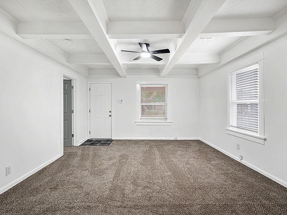 This beautifully remodeled 2-bedroom, 1-bath home offers stylish updates and a prime location right next to the Joplin High School football stadium. The roof and front porch were replaced in 2018, and the property has since been updated inside and out with fresh interior and exterior paint and all new windows that fill the home with natural light. Inside, you'll find all new flooring throughout, a brand-new stove, and an updated bathroom complete with a new toilet and vanity. Additional upgrades include new faucets, ceiling fans, and modern window blinds for a crisp, clean look. The plumbing has been updated to PEX, and brand-new central heat and air (2025) ensure year-round comfort and efficiency. The floor plan includes a welcoming dining area with an eat-in kitchen, a dedicated office for work or study, and a convenient laundry room. A small storage building in the backyard provides extra space for tools or outdoor equipment. With its move-in ready condition and sought-after location near schools, shopping, and local amenities, this home combines modern comfort with everyday convenience. Schedule your showing today to experience all it has to offer!