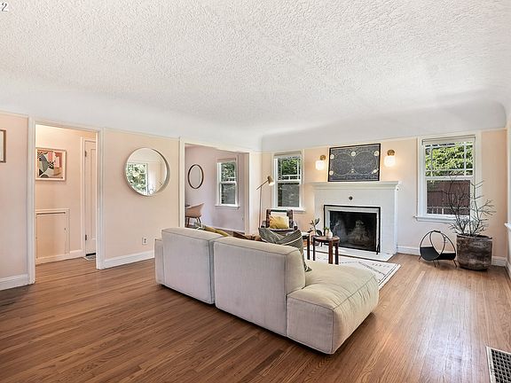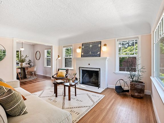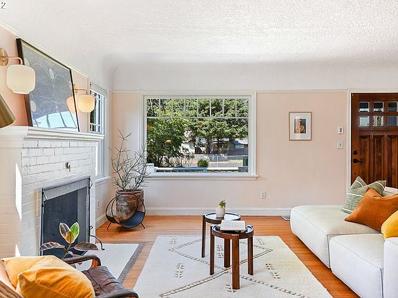 Charming SE Bungalow in a gardener's paradise! Set back from a quiet street, this home has all the classic features - hardwood floors, wood-burning fireplace & open layout drenched in sunlight. Upstairs loft hosts the primary room w/ new carpet. Finished basement has bonus room & non-conforming bedroom. Back deck is adorned w/ wisteria & large, covered front porch looks out on the oversized lot with raised beds & space for so much more! Room for boat/RV parking. Near Powell-Butte Nature Park! [Home Energy Score = 2. HES Report at https://rpt.greenbuildingregistry.com/hes/OR10151360]