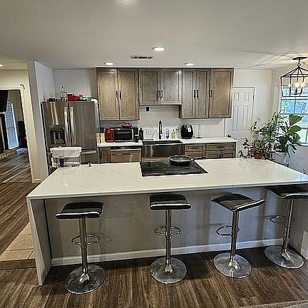 This home was recently renovated and has brand new quartz contertops, a 9ft quartz island ,brand new stove, new 36 ss farmhouse sink, Brand new cabinets, new flooring in the living room and den (with a fireplace!), new insulation, new back patio, and many more new features!