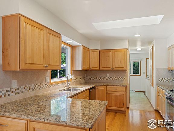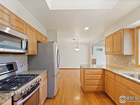 One owner home in Loveland Country Club. Light bright and welcoming this custom built ranch style home offers something for everyone. Main floor boasts hardwood floors, living room with original brick fireplace, family room off kitchen has custom alder/marble built in cabinet gas fireplace access to large flagstone covered patio with water feature. Updated kitchen includes Tharp built alder cabinets, granite counters, under cabinet lighting built in pantry with pull outs, gas stove. Updated Pella windows throughout, basement has large shop with sink and ample storage, Rec room has cozy TV area, game space with built-in storage and wood burning stove. Love to Garden, the lot and a half includes multiple perennials, lilac bushes, apple, peach, plum and Elder Berry trees, raised beds all on drip system. Oversized 2 car garage plus RV Parking behind double gate. Pre-Inspected for your piece of mind.