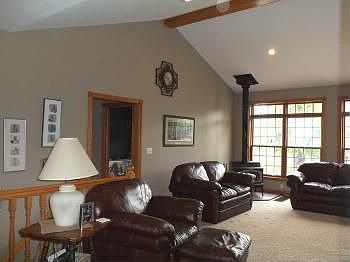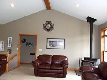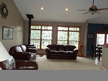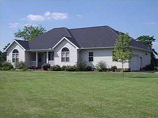 Outstanding Amish Custom built Contempary Ranch home sitting on rolling 3.43 acres with a shared lake and pole barn. This home has it all for the active lifestyle with a walk out basement that includes a TV/recreation room, half bath, "game night" area, large storage room with shelves and a large bonus room that could also be an office/ exercise room. Home has beautiful solid wood doors, custom oak trim, Pella windows, 18" ceramic tile in kitchen, utility room, entry and all bathrooms. You will enjoy many winter evenings sitting by the Lopi woodburning stove (new in 2005 per Owner) which heats the upstairs to a nice, cozy temperature and helps save on your heating winter heating bills! Great room offers lake view! Many of the main level rooms have beamed cathedral ceilings. Formal dining room has a distinctive front window and hardwood flooring. Spacious kitchen has breakfast bar that separates it from the dining nook, and lots of cabinets! Oversized tub and shower in master bath;plus both full bathrooms offer double sink vanities. Upgrades in this home include: Honeywell humidifier and air filter system, Rheem central air and 90% efficient gas furnace, oversized walk out door from basement, professional landscaping, aggregate patio and paved treelined driveway