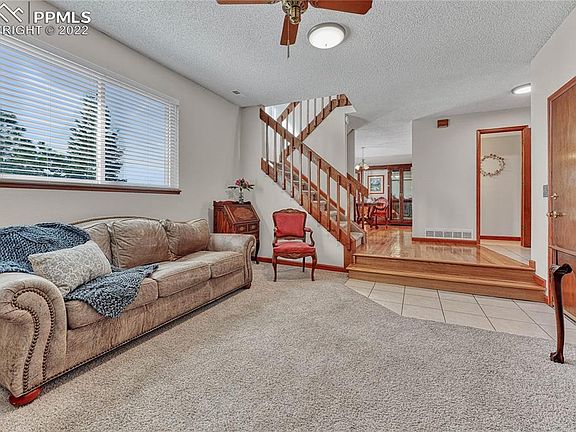 Beautiful 2-story home reflects true pride in ownership. Located in Northwest Colorado Springs this home offers fabulous fenced backyard with views of the Colorado Front Range Mountains. The charming front porch welcomes you home. Foyer features ceramic tile for high traffic area joining to hardwood flooring. Main level offers separate powder room and cozy formal living room. Combination Kitchen/Dining Room opens onto large concrete patio, perfect for enjoying the beautiful Colorado weather, or watching the Air Force Thunderbirds perform. Spacious Primary Bedroom Suite features walk-in closet and en-suite full bathroom. Two additional upper level bedrooms use secondary full bathroom. In the past year Seller has added central air conditioning, installed new electrical service panel, stainless steel dishwasher and self-cleaning oven. New interior paint on the main and upper levels make this home shine. Award Winning Academy School District 20 close to Antelope Trails Elementary School. This property is near the Air Force Academy with quick access to I-25. Area offers shopping, local restaurants, parks, and the new Top Golf Sports Complex. Price makes this home truly affordable. Call to schedule your private showing.