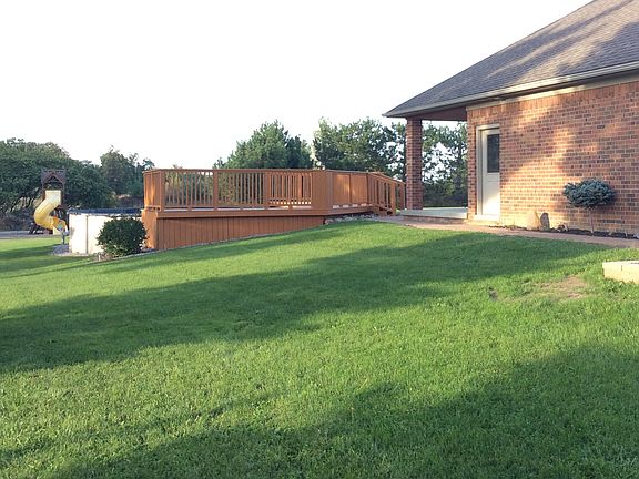 Beautiful all brick ranch on almost an acre of land!!! 3 car attached garage. Separate stairway from basement up to the garage. 24 foot round pool with freshly stained deck wrapping halfway around. High efficiency furnace with natural gas to help keep heating costs down. Anderson windows. Natural gas fireplace in living room. Oak hardwood floors throughout kitchen, dining room, and den! Jacuzzi tub in master bath with walk-in closet. Full finished basement with amazing bar. A must see