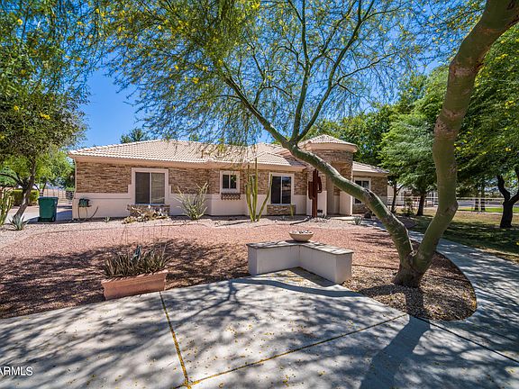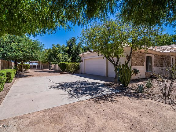 Charming country living in the heart of Gilbert. Lovely custom home situated on 1 acre irrigated horse property with room for all your toys and cars. The great room floorplan features 4 BR, 2 BA, 3 car garage with lots of storage, fireplace, solar, ceiling fans, tile flooring, upgraded kitchen with wine frig & stainless appliances, mountain views, no HOA, and more. The spacious rear grounds feature hay barn, stalls with water, citrus grove, grass area, covered patio with cool misting system, remote controlled sun shades, and a sparkling heated pool and spa perfect for relaxing and entertaining. Come see this rare opportunity to have it all and enjoy the tranquil and peaceful atmosphere this property provides.