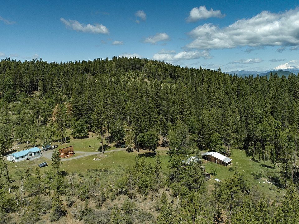 73.71 secluded acres w/mature pines, oaks & flowering dogwoods.Striking views of majestic Mount Shasta & Snow Mountain, private trails, 5 natural springs and option to go totally off grid if you so desire thanks to owned solar panels, battery & back up generator.1280 square foot 2 beds/2 baths + office +laundry room. Well maintained manufactured home on permanent foundations, w/60 pound snow load metal roof, front has new engineered decking & covered side porch. Shop, carport, huge storage area & beautiful Ag building that needs some repairs but adds tremendous old charm.A wide gated road on property will take you by foot or wheels to explore the acreage and enjoy the panoramic views.Property borders Sierra Pacific land.One of a kind mountain retreat to escape our hectic world.
