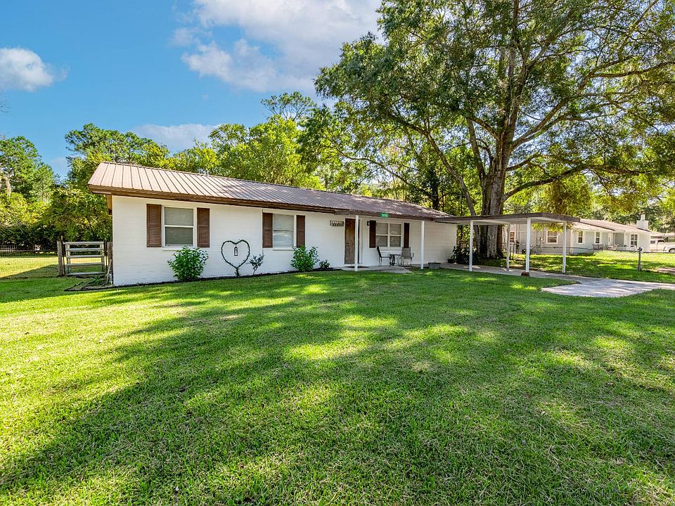 Welcome home to this beautifully maintained and recently upgraded concrete block residence just minutes from downtown Starke. This charming 3-bedroom, 1.5-bath home sits on a spacious corner lot and offers the perfect blend of comfort, functionality, and country-style privacy, all while being close to town conveniences. Step inside to find an inviting living room filled with natural light and a warm, welcoming feel. The home features recent updates throughout, a large laundry area with pantry/storage that provides plenty of space to stay organized. The kitchen flows easily into the main living area, creating an ideal layout for family living and entertaining. Out back, you'll find a fully fenced yard with double-gate entry, perfect for boat or trailer access. Metal roof installed 2012 and new water heater 2021. A detached shed with RV hookup plus a raised garden add even more flexibility for hobbies, storage, or travel convenience. The large backyard offers endless potential for gardening, play, or simply relaxing outdoors. Located on a paved road just outside the city limits, this property enjoys the benefits of no city utilities while still being only a short drive to shopping, schools, and restaurants. If you're looking for a well-cared-for home with room to grow, this is the one!