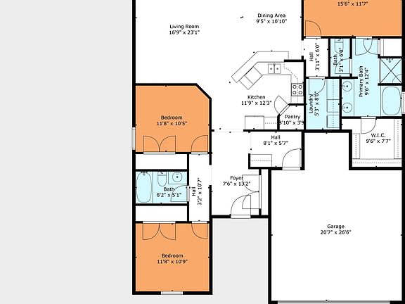 The large primary bedroom tucked away on the back of the home includes ensuite bathroom complete with a separate soaker tub and walk-in shower, dual vanities with granite countertops, and a generous walk-in closet. Two additional bedrooms and a full guest bathroom complete the interior layout.